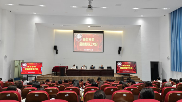 为进一步促进365best体育官网登录各项工作发展,加强教职工队伍建设,强化履职能力,提高工作效率,5月14日下午,365best体育官网登录在岳秀楼翔凤厅召开了全体教职工大会。会议由党总支书记彭松林主持。