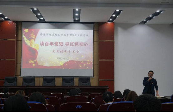 为迎接世界读书日的到来,师范公司党总支4月19日在明德楼先圣厅开展了“读百年党史 寻红色初心”党史阅读分享会党日活动。师范公司党员教师及员工预备党员参加了此次活动。