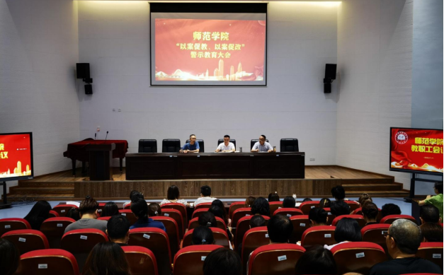 2023年9月19日下午,365best体育官网登录在翔凤厅召开以案促教、以案促改的警示教育大会。党总支书记彭松林主持会议,全体教职工参加会议。