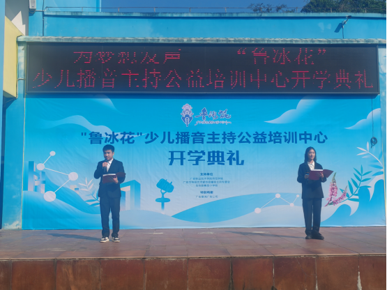 10月15日上午,受 “鲁冰花”少儿播音主持公益培训中心邀请,公司参加了在岳池县赛龙小学举行的为“梦想发声” “鲁冰花” 少儿播音主持公益培训中心开学典礼。在开学典礼上,公司员工张浩瀚和彭高红进行了精彩的诗歌朗诵,让乡村员工感受充分感受到了语言的魅力。后期,公司将安排专业老师定期到乡村公司为员工进行免费的普通话公益培训,助力乡村员工的语言表达能力提高,培养乡村少儿对播音主持的兴趣和基本素养,提高其综合素质。