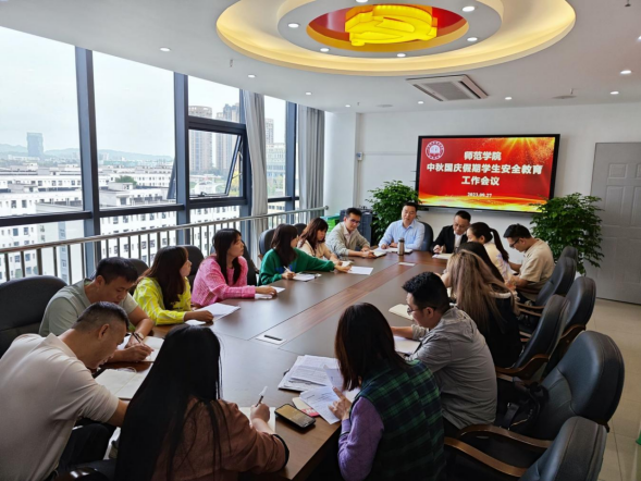 9月27日下午,365best体育官网登录召开中秋国庆假期安全工作会议。师范公司党总支书记彭松林、党总支副书记牛振宇、员工科科长李智强以及全体辅导员出席本次会议。
