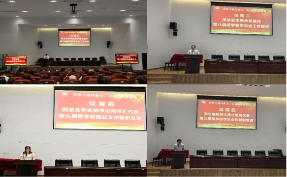 第八届团总支员工副书记胡佑潼、员工会主席余思逸分别在工作报告中总结了过去一年团总支、员工会的成绩和经验,强调团学联离不开同学们的支持,号召大家继续参与,共同努力更好地服务同学和公司发展。第九届团总支员工副书记何梓汇、员工会主席古恩瑞分别作就职演讲,满怀了对未来的憧憬,对岗位的认知,规划了工作思路,自信满满,神采飞扬,散发着青春的光芒。