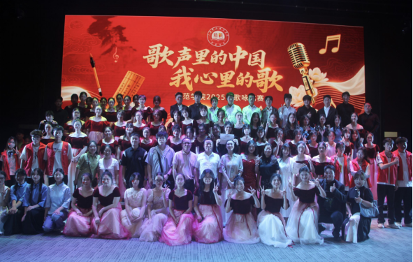 比赛以班级为单位全员参与,曲目紧扣爱国主义与时代精神,既有经典红歌的深情回响,亦有时代新声的激情碰撞。参赛班级匠心独运,或齐声高歌展豪情壮志,或领唱悠扬诉赤子心声,或朗诵铿锵明报国之志,配合整齐划一的服装与创意十足的道具,将思想性、艺术性、观赏性完美融合,打造出一场震撼心灵的视听盛宴。《国家》唱响家国同心的铿锵誓言,《少年中国说》激扬青春报国的凌云壮志,《我爱你中国》倾诉对祖国的无限眷恋,《红星闪闪》再现革命先辈的赤胆忠心;《追寻》以空灵旋律叩问初心使命,如星火燎原点亮信仰之光,《红旗飘飘》以猎猎风姿激荡热血豪情,似惊雷裂空澎湃赤子之心。经典与新声交织,豪迈与柔情共鸣,勾勒出一幅波澜壮阔的时代画卷。