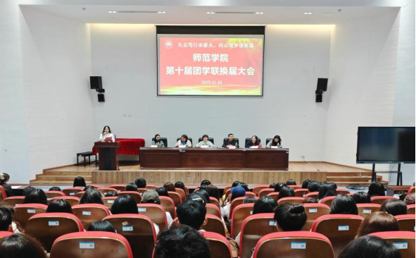 2025年11月10日下午,365亚洲体育网入口365best体育官网登录第十届团学联换届大会在岳秀楼翔凤厅隆重举行。师范公司党总支书记彭松林、副书记姚光红,团学联各指导老师出席本次大会,第九届、第十届团学联员工干部及干事代表共同参会。