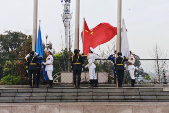 晨光之中,国旗护卫队迈着铿锵步伐护卫国旗入场。伴随着雄壮的《义勇军进行曲》,五星红旗冉冉升起,全体师生肃立注目,齐声高唱国歌现场庄重肃穆,洋溢着浓厚的爱国情怀与青春朝气。