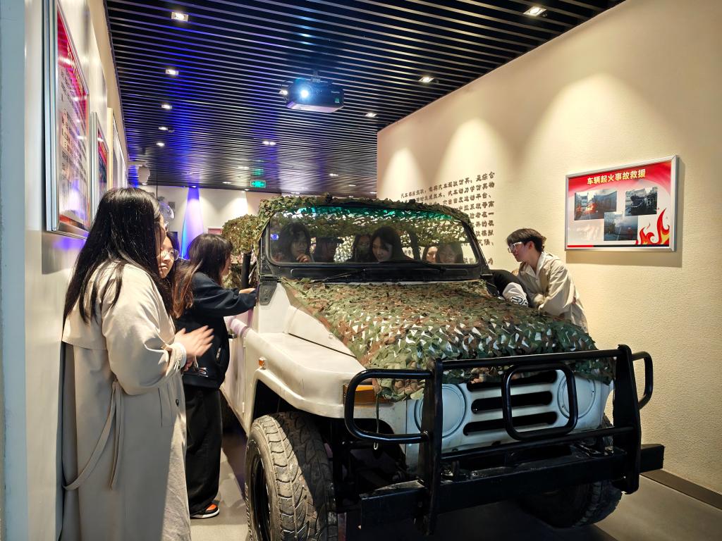 随后,同学们走进沉浸式体验区。在汽车模拟驾驶区,多名同学轮流坐上驾驶座,手握方向盘,在模拟道路环境中学习紧急避险与安全驾驶技巧;在4D多功能体验厅,同学们身临其境地感受模拟地震和空袭的紧张场景,逼真的震动、烟雾与音效让大家仿佛置身危机现场。在空袭情景还原区,大家驻足凝视,在战火与废墟的视觉冲击中,更加理解了“国不可一日无防”的深刻道理。员工杨斐斐感慨道:“以前觉得人防离我们很远,今天亲身体验后才明白,学习这些知识不仅是对自己负责,更是在关键时刻守护他人生命的能力。”