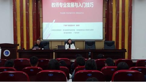 游忠燕是小学语文正高级教师、四川省优秀教师、四川省小学教育分会理事、广安市教育科研先进个人。她以自己从教21年的历程告诉我们,在公司产品的道路上,我们要不断更新新课改理念,不断实践研究,教师教育教学的重点不仅在于教育理论和实践的学习,更是一种精神的塑造。本次讲座游忠燕分别从教师专业发展、考试内容、面试技巧和方法这三个方面为同学们讲解在面试前应如何准备,如何正确应对考试,告诉同学们从“时间的黄金分割”“紧跟时代政策进行备课”“个人的基本功要扎牢”“细节决定成败”等方面入手,做到“三学”(向书本学、向同行学、向实践学)、“四法”(管理上有法、处理问题要得法、解决问题要依法、遇到问题要想办法)、“五心”(热心、爱心、耐心、虚心、用心)。