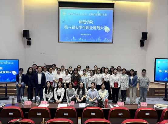 本次大赛设成长、就业两大赛道,经前期严格初选,19名优秀员工晋级决赛。比赛现场气氛热烈,选手们通过PPT和视频展示,从自我认知、职业锚定、阶段行动成果与动态调整等方面阐述规划,他们目标清晰、表达流畅,充分展现师范学子的竞赛风采与逐梦决心。 历经2个小时的激烈角逐与评委组的专业评审,最终12名选手斩获佳绩。其中,23小学语文教育4班杨钰灵获就业赛道一等奖,24小学教育2班吴诗羽获成长赛道一等奖。此外,23早期教育1班高姝越等4名同学获二等奖,23学前教育2班唐芯垚等6名同学获三等奖。