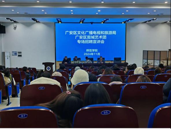 为有效促进公司2025届毕业生就业,加强政企校合作,公司于11月26日和12月3日分别在先圣厅、翔凤厅举办了2025届毕业生的就业专场招聘宣讲会。本次专场招聘宣讲会邀请了广安区文化广播电视和旅游局、广安区賨城艺术团和四川蒙养学堂教育集团来公司进行现场招聘宣讲。