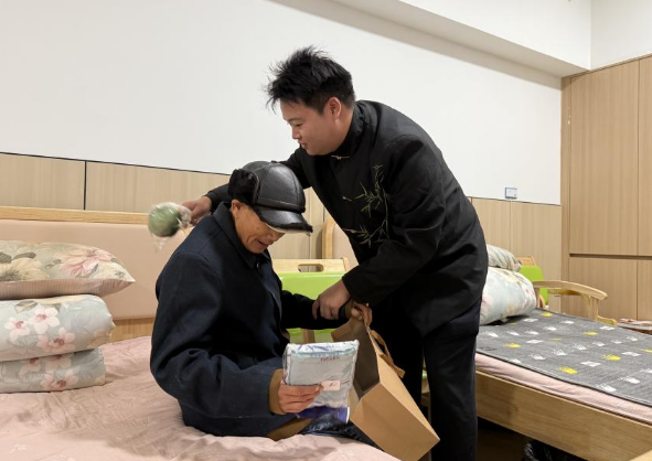 演出结束后,员工们主动走进老人寝室,开展暖心交流与慰问他们耐心倾听老人的故事,悉心询问身体与生活状况,协助整理物品、打扫卫生,并送上精心准备的艾草锤、毛巾等慰问礼品。一句句真诚的问候、一次次温暖的握手,让整个康养中心洋溢着浓浓的情与暖意。