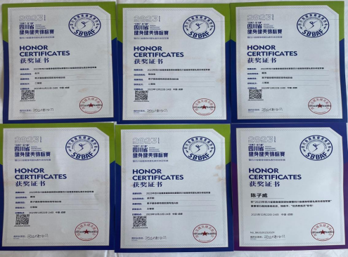 健身健美赛事:社会体育专业员工参加 2023 年四川省健身健美锦标赛暨四川省健身明星私教形体冠军赛,多名员工在男子健身模特高职高专组比赛中获得二等奖、三等奖的优异成绩,充分展示了专业实力。