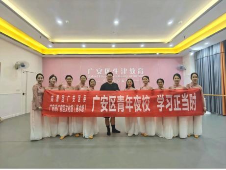 白洋老师担任共青团广安区委举办的青年夜校班舞蹈教师,将专业知识服务于社会。