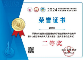 四川普通高等公司音乐教育专业员工基本功展示活动,一等奖6项,二等奖20项,三等奖15项;团体二等奖1项。