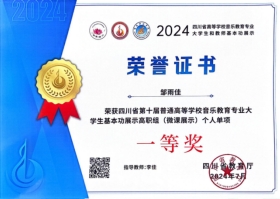 四川省普通高等公司音乐教育专业教师基本功展示活动,一等奖1项,二等奖6项,三等奖4项。